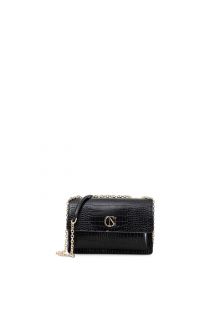 Aktentasche mit Patte aus Lederimitat mit Krokodruck und CafèNoir-Accessoire als Verzierung vorn. Verschiebbare Kette zur Regulierung der Länge, kann über der Schulter getragen werden.