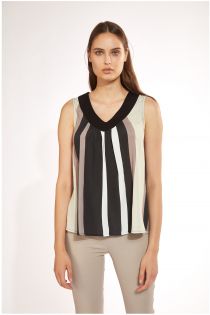 Praktisches Top aus bedruckter Viskose mit tiefem V-Ausschnitt und Kontrastrand