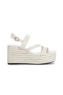 Sandalen nappaleder mit asymmetrischen riemen. keilschuhe mit gepolsterter optik. die bequeme innensohle aus echtem leder macht das schuhwerk auch nach stundenlangem tragen noch bequem. der absatz ist 70 mm hoch das plateau beträgt 35 mm.
