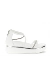Asymmetrische plateau-sandalen mit dünnen mit mikroglänzen verzierten riemchen reißverschluss hinten und umlaufendem design. das 3 cm hohe plateau und die 4 cm hohe sohle verleihen sommerlichen looks einen modernen funkelnden touch.