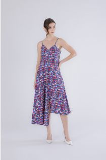 asymmetrisches kleid aus bedrucktem popeline tweed