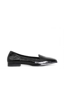 Ballerina aus naplak mit gummizug und zehenkappe aus metall. futter und innensohle sind aus leder. 15 mm hoher absatz.
