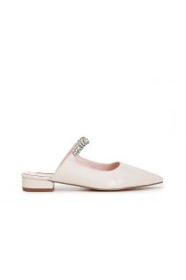 Ballerinas aus Leder mit offenem Rücken und Schmuckband