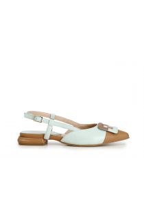 Hinten offene ballerinas aus leder mit quadratischem accessoire zur verzierung der spitze. lederbezogener absatz.