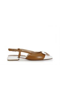 ballerinas aus leder mit quadratischem accessoire tan/white