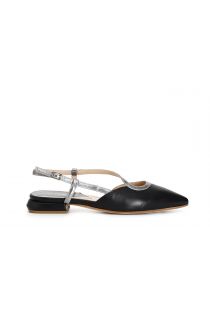 Ballerinas aus nappaleder und laminat hinten offen mit riemchen und asymmetrischem ausschnitt.