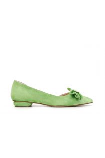 Asymmetrische Ballerinas aus Rauleder mit schlankem Vorderschuh. Flacher, mit demselben Material wie der Oberschuh bezogener Absatz. Eine große Schleife ziert die Spitze und verleiht ihm echten Chic.