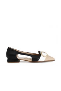 Ballerinas leder mit dekorativer schnalle. spitz zulaufender schuh in lacklederoptik. 15 mm hoher lederabsatz.