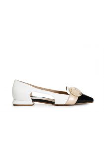 ballerinas mit lederschnalle und zehenkappe aus lackleder white combo