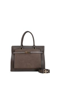 bauletto-tasche aus zwei materialien mit detail in krokodruck
