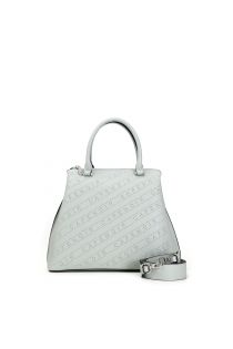 Bauletto-Tasche mit schräg verlaufendem Logo-Muster in perforierter Verarbeitung und mit breitem Schultergurt