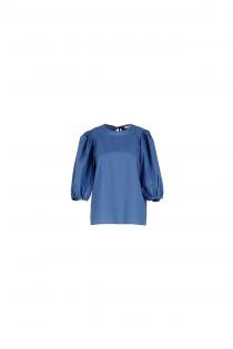 Baumwollbluse mit gekräuseltem Ärmel und Tropfenausschnitt hinten