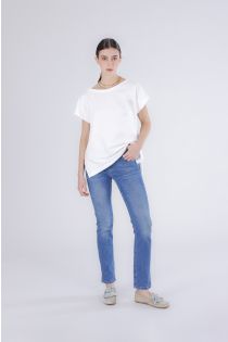 Damen-t-shirt aus baumwolljersey mit u-boot-ausschnitt und oversized-passform. dieses bequeme und vielseitige shirt mit ton-in-ton-logostickerei auf der vorderseite ist ideal für lässige alltagslooks. das model ist 171 cm groß und trägt größe s. bequeme passform.