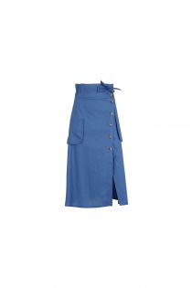 Baumwollrock mit Knöpfung vorn und Schärpengürtel aus Stoff. Originelle aufgesetzte Taschen.