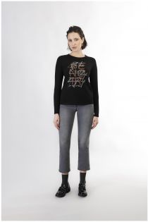 Langärmliges t-shirt aus stretch-baumwolle mit aufdruck und stickerei die unseren slogan „be noir“ wiedergeben.