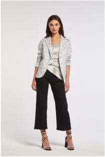 Bedruckte einreihige jacke aus dehnbarer baumwolle