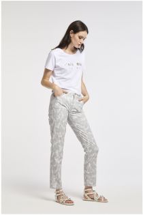 Bedruckte slim-hose aus baumwoll-stretch-gewebe