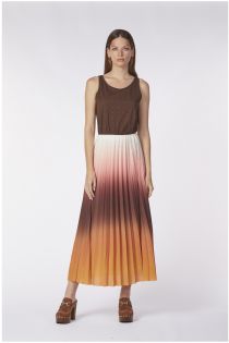 Eleganter bedruckter und plissierter langer rock mit gummizug in der taille.