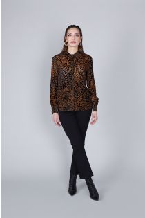 Langärmeliges Hemd aus verwaschenem, bedrucktem Viskose-Samt, perfekt für lässige Looks mit einem Hauch von Eleganz. Normale Passform. Das Model ist 172 cm groß und trägt Größe S.