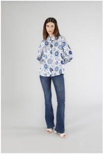 Langarmshirt aus bedrucktem viskosesatin. knopfverschluss. ein must-have in der garderobe das tagsüber mit einer hose oder jeans getragen werden kann.