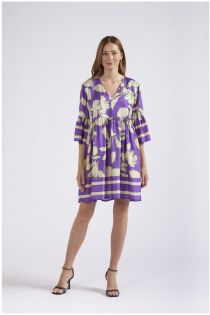 bedrucktes kleid mit geraffter taille maxy purple flower