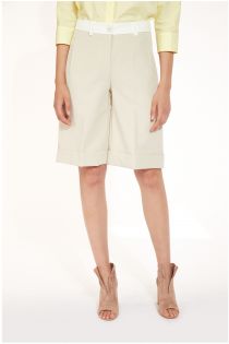 Raffinierte, feine Bermudahose mit einem schmalen Kontrastgürtel, seitlichen Taschen und trendigem weitem Bein