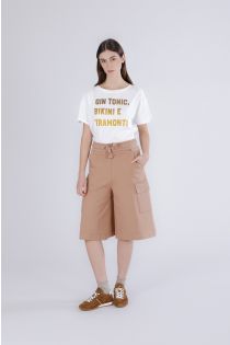 bermudashorts aus fleece mit taschen und applikationen caramel