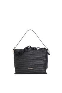 beuteltasche aus raffiabast mit metallschnallen und weicher kette black