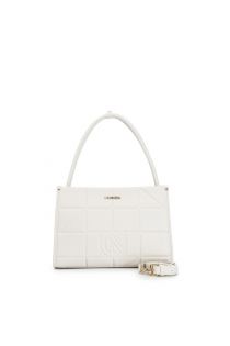 beuteltasche geprägte, gesteppte optik mit geometrischem muster. cream