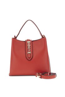 beuteltasche in lederoptik mit verdeckten ösen und metallösen red