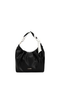Beuteltasche mit kleinen Falten und geflochtenem zweifarbigem Griff mit personalisiertem CN-Accessoire