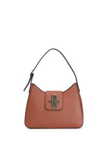 beuteltasche mit gelasertem cafénoir-muster tan