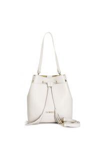 Beuteltasche mit kordelzug und spitze mit quasten. offene tasche vorne. kurzer und langer doppelter schultergurt mit karabinerhaken.