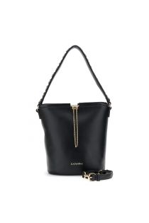 beuteltasche mit kordelzug, verziert mit einer metallkette black