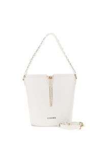 beuteltasche mit kordelzug, verziert mit einer metallkette ivory