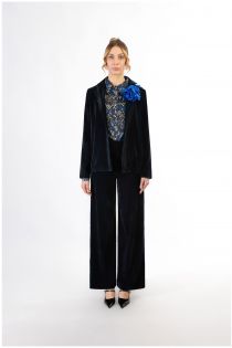 Bequemer ungefütterter blazer ohne knöpfe aus strukturiertem samt mit elegantem schillereffekt. zeitloses kleidungsstück das eleganz und stil ausstrahlt.