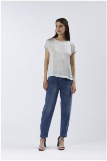 Satinbluse mit rundhalsausschnitt und kurzen fledermausärmeln. die weiche linie vermittelt komfort und funktionalität und eignet sich für verschiedene gelegenheiten.