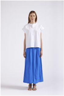 Ärmellose bluse kastenform mit mandarinkragen aus baumwollpopeline.