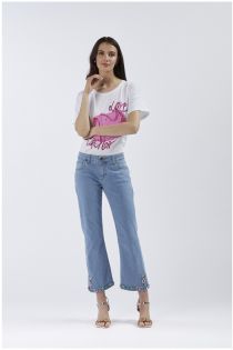 Bootcut-jeans aus komfort-denim. der untere teil der jeans ist mit einer exklusiven stickerei aus mehrfarbigen strasssteinen verziert.