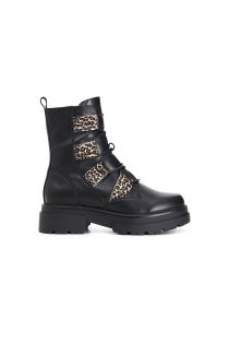 Boots aus Leder mit spezieller Schnürung und Besätzen aus Cavallino-Leder in Leopardenoptik