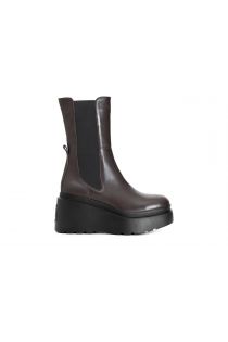 Chelsea-Boots aus Leder mit Gummizügen und Sohle mit Keilabsatz, der durch ein erhabenes Logo unter der Ferse die Blicke auf sich zieht.