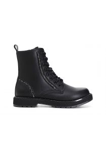 Boots aus Lederimitat mit Strassdetails und verzierter Rahmen.