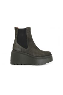 Boots aus Rauleder mit Gummizug. Sohle mit Keilabsatz, der durch ein erhabenes Logo die Blicke auf sich zieht