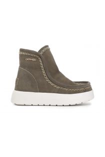 Boots aus Rauleder mit Futter aus Pelzimitat. Metall-Logo und erhöhte Sohle. Ziernähte am Rand.