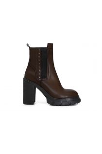 boots mit absatz und plateau aus leder mit gummizug und ziernieten