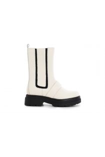 Boots aus zweifarbigem Leder mit seitlichem Gummizug und CN-Logo. Profilsohle
