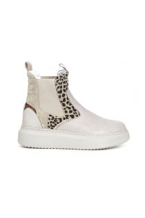 Boots mit seitlichem Gummizug zum einfacheren An- und Ausziehen. Oberschuh mit Besätzen in Leopardenoptik und laminierten Einsätzen.