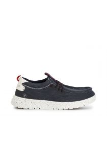 Lässiger herren-schnürschuh mit canvas-stoffeinsatz. die innensohle ist aus leder. die sohle ist hoch h. 3 cm. dieser schuh garantiert komfort und halt beim gehen das modell vereint auf nüchterne weise komfort und stil.