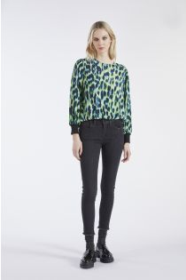 Hose aus Superstretch Denim-Gewebe mit Skinny-Passform und Mikrostrass-Applikation auf dem Täschchen