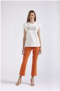 Ärmelloses t-shirt aus stretch-baumwolljersey. cafènoir-logo aus strass in kontrastfarbe.